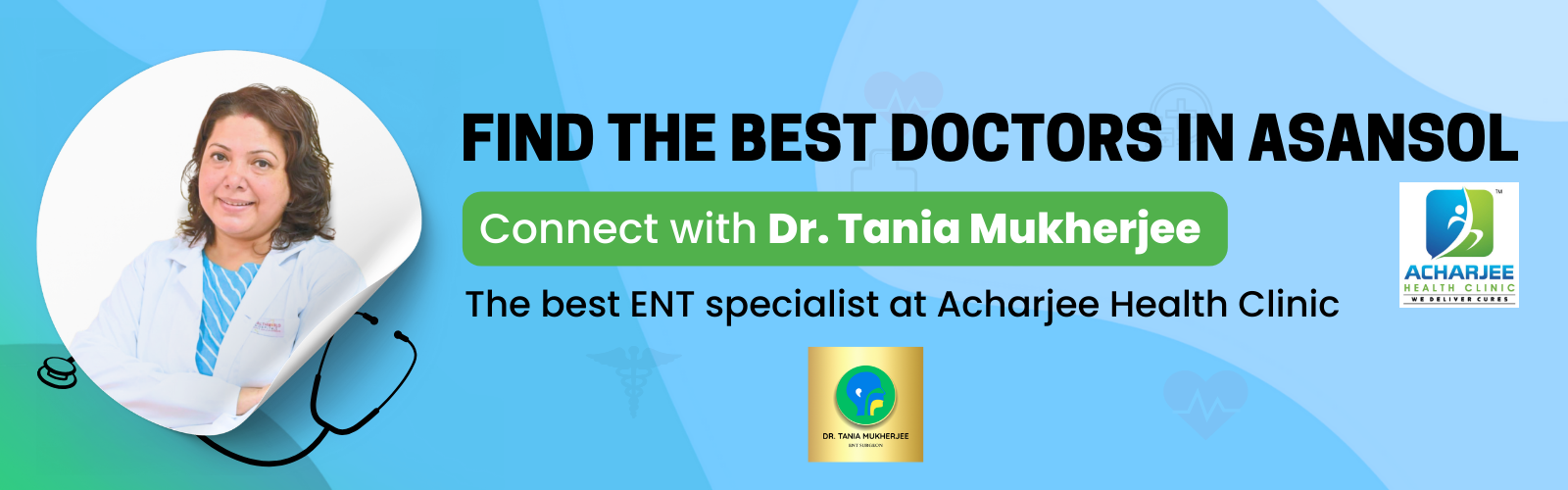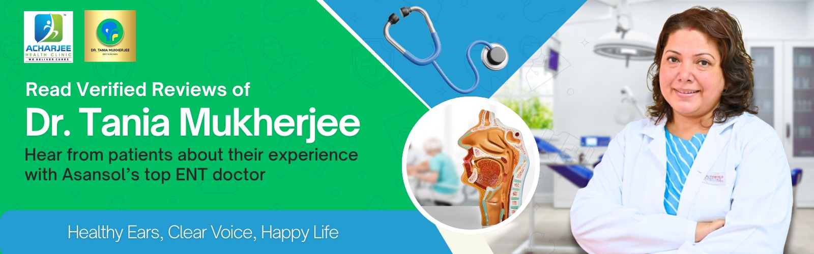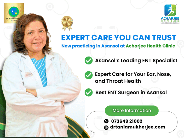 Welcome to the official website of Dr. Tania Mukherjee, one of the leading ENT (Ear, Nose & Throat) specialists and facial plastic surgeons in West Bengal. With more than 5 years of post-specialization clinical experience, Dr. Mukherjee has earned the trust of thousands of patients through her expertise, compassionate care, and commitment to excellence. Currently practicing as an ENT Consultant at Health World Hospital, Durgapur, and serving as an Assistant Professor at Santiniketan Medical College, Dr. Mukherjee combines academic brilliance with practical experience to deliver the best possible outcomes for her patients.